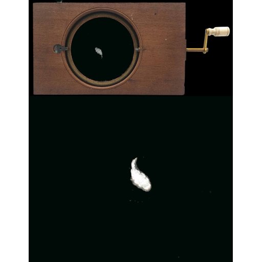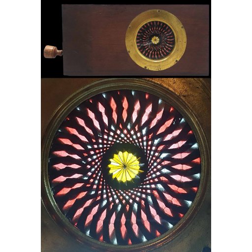 État d'origine pour cette plaque animée française peinte à la main vers 1860 - 70. Bois, laiton et verre, manivelle en ivoire. En état de fonctionnement. 13 x 21.5 cm