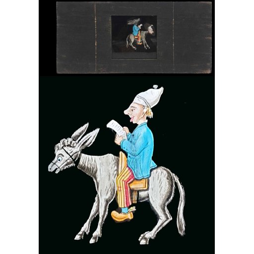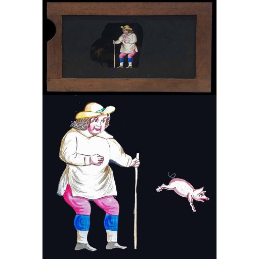 État d'origine pour cette plaque animée française peinte à la main vers 1870. Bois et verre. En état de fonctionnement. 10 x 18 cm