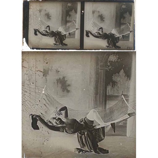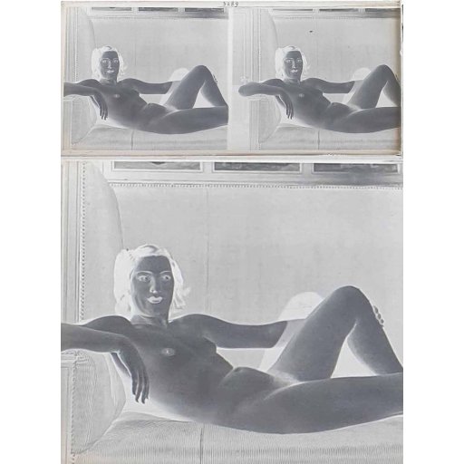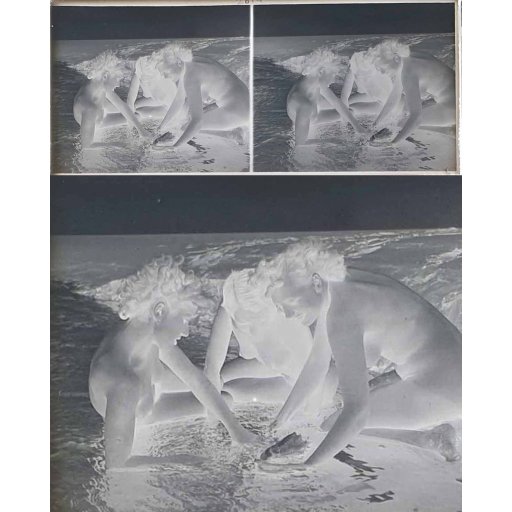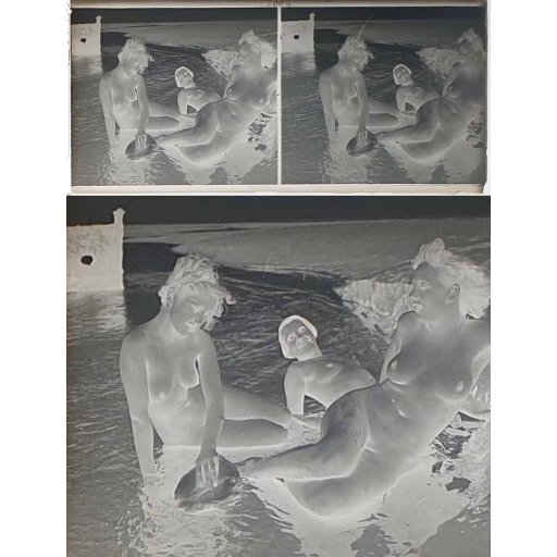 BEAU NÉGATIF STÉRÉO ÉROTIQUE DE NU FÉMININ sur verre, vers 1920.  6 X 13 cm