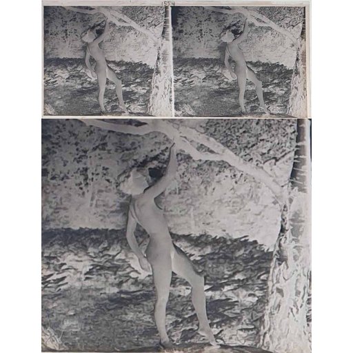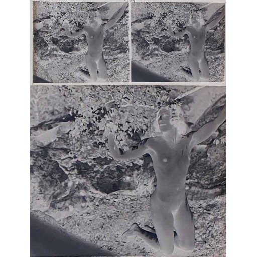 BEAU NÉGATIF STÉRÉO ÉROTIQUE DE NU MASCULIN sur verre, vers 1900.  6 X 13 cm