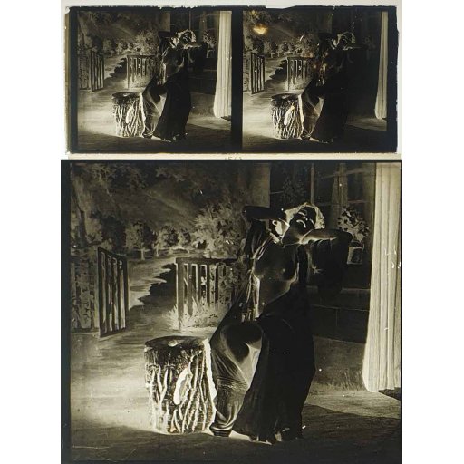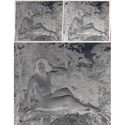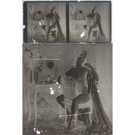 NÉGATIF STÉRÉO ÉROTIQUE DE NU FÉMININ sur verre, vers 1920.  6 X 13 cm