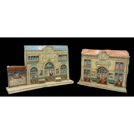Belles petites gares en tôle lithographiée vers 1930 à l’échelle 0 en très bel état d'origine.