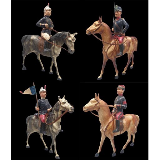 4 cavaliers en celluloïd de fabrication française vers 1900.