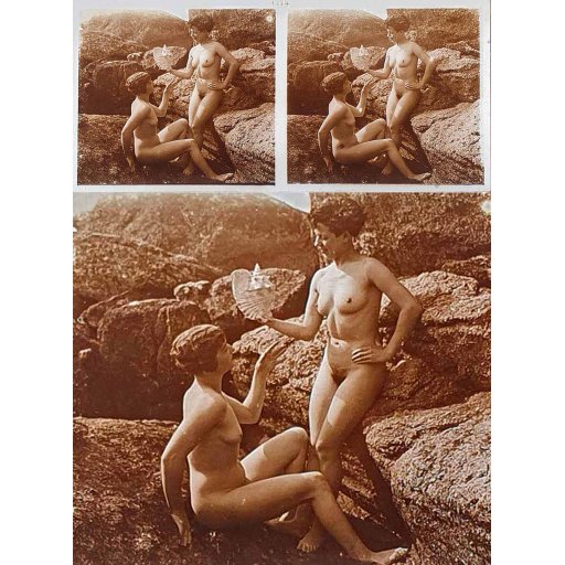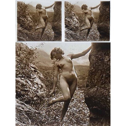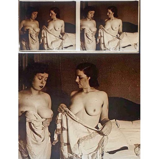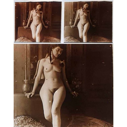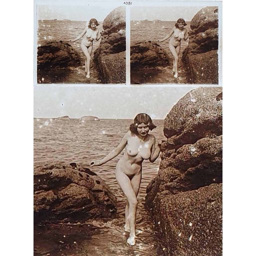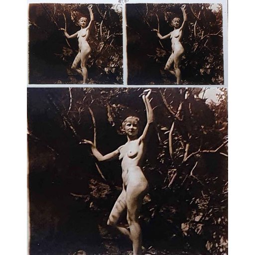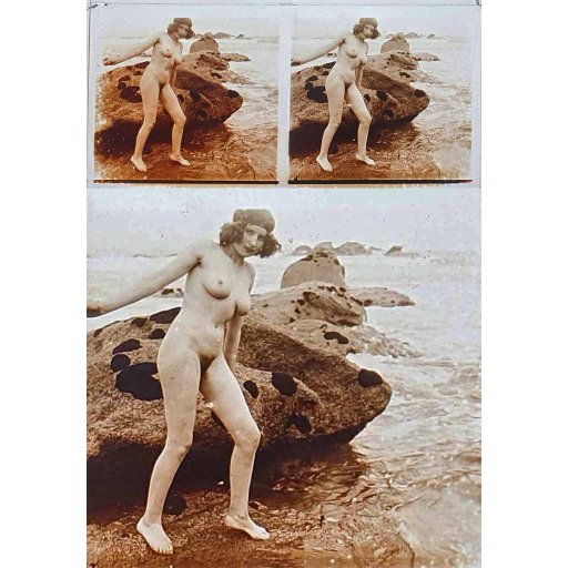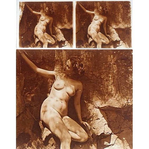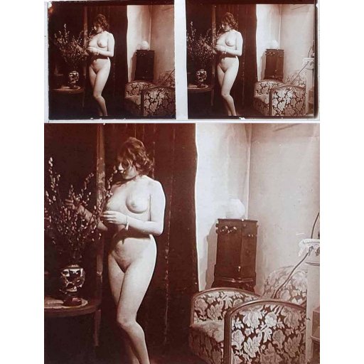 PHOTO STÉRÉO ÉROTIQUE DE NU FÉMININ vers 1900 - 1920. Fêle à gauche