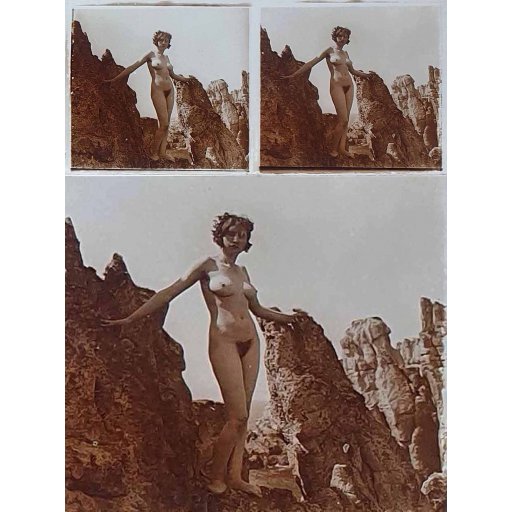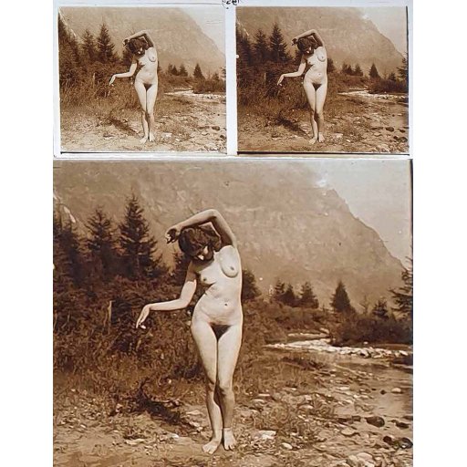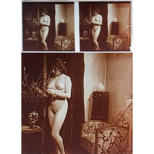 PHOTO STÉRÉO ÉROTIQUE DE NU FÉMININ vers 1900 - 1920. Cassée à gauche