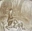 Joli décor à 3 scènes sur le thème de l'enfance. - le jeune militaire et son chien - enfants se rendant à l'école - garde champêtre et enfants.
