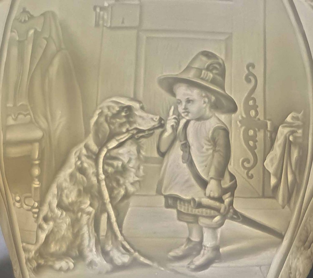 Parfait état pour cet abat-jour lithophanique XIX ème de marque : LITHOPHANIE FRANÇAISE ....