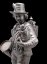 Bronze pyrogène représentant un jeune saltimbanque au tambour portant un singe dans les bras et une lanterne magique....