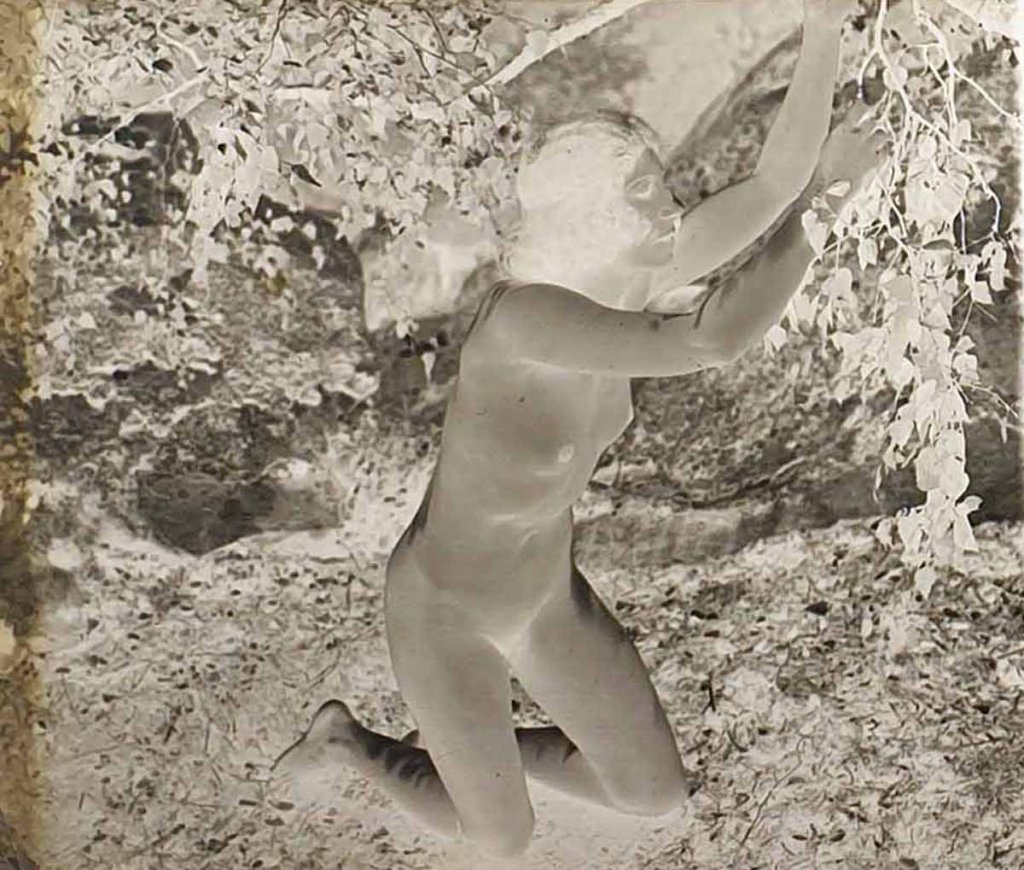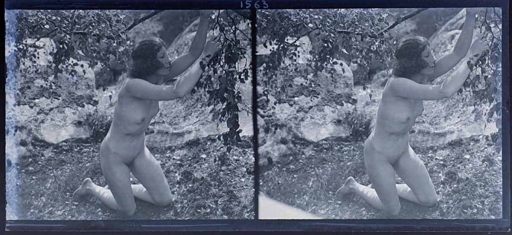 NÉGATIF STÉRÉO ÉROTIQUE DE NU FÉMININ sur verre, vers 1920. 6 X 13 cm