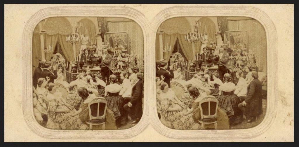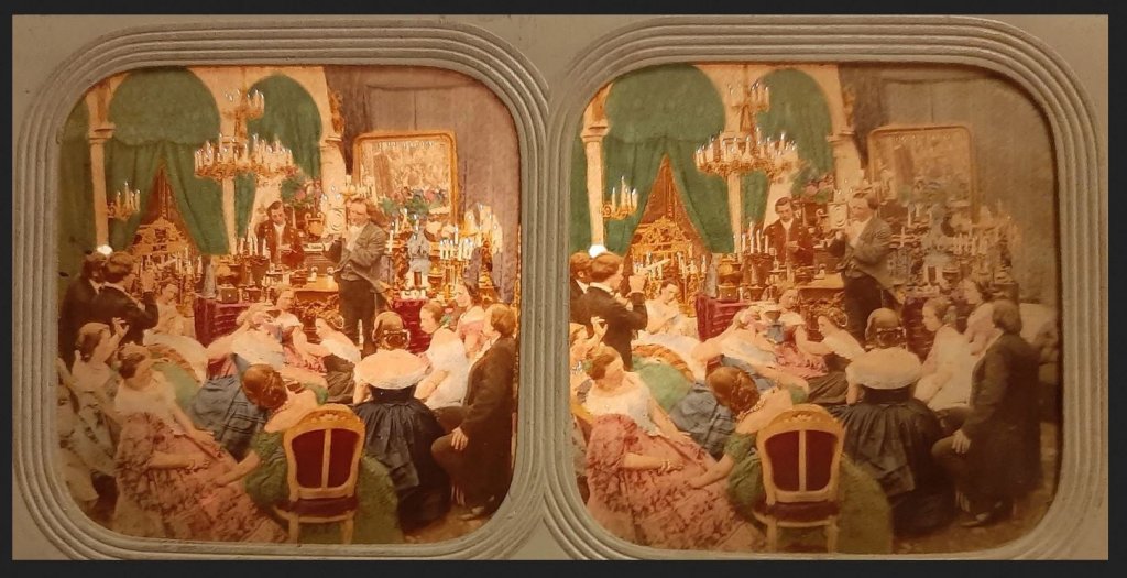 Rarissime vue stéréoscopique de l'époque Napoleon III représentant une scène d'illusionisme sous le Second empire.....